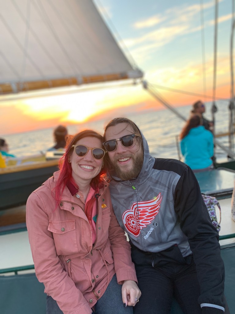Sunset Sail – After setting up our campsite, we went to downtown Bay City to get on the Appledore Schooner for a sunset sail! It’s supposed to last 3 hours, but ours was a lot longer because we got caught at train going over a bridge (the bridge has to open for the boat to go through)! The sunset was really beautiful on the water and you learn about sailing and the area. There is only one small bathroom that you have to be escorted to – that was the only thing that made me nervous! You can bring your own alcohol and they serve snacks.