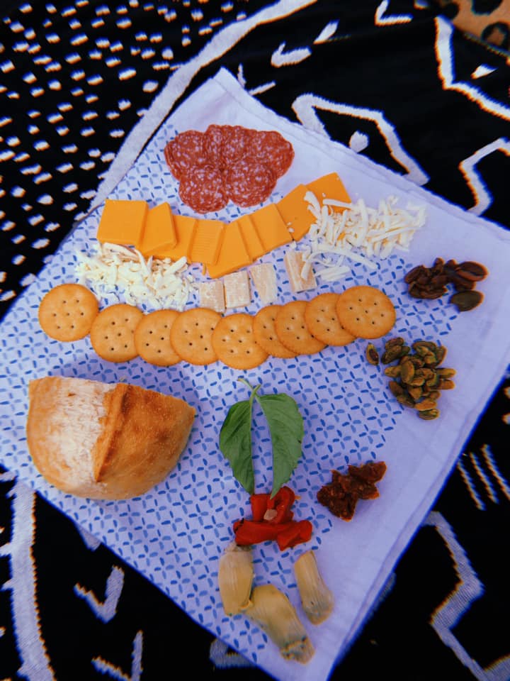 Later in the day, we went out for a picnic. Yes our whole day/lives revolve around food. I got some of our favorite cookies and beer delivered earlier in the week. When we got groceries, I added some cheese, bread, meat and some other charcuterie items. He didn’t really notice because a lot of them were used in other recipes throughout the week. I packed all that up in a cooler and we picked a park that we’ve never been to in our area. We walked there and set up a picnic blanket, a little cheese board and drank our beer. I brought a candle sparkler and put it in one of the cookies. It was nice to get out of the house for a while!
